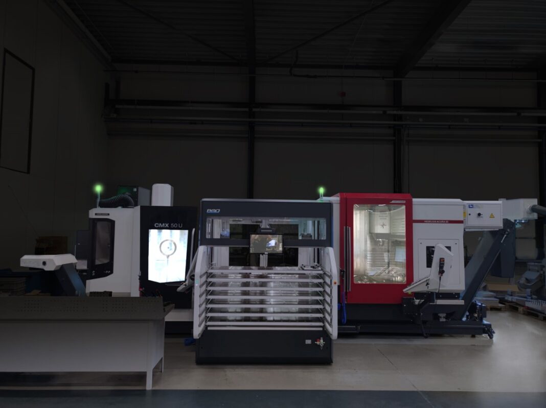 Flexibiliteit en onafhankelijkheid staat voorop bij de Platinumcel, die hier gekoppeld is aan een machine met een Siemensbesturing en een CNC-machine met Heidenhain besturing.