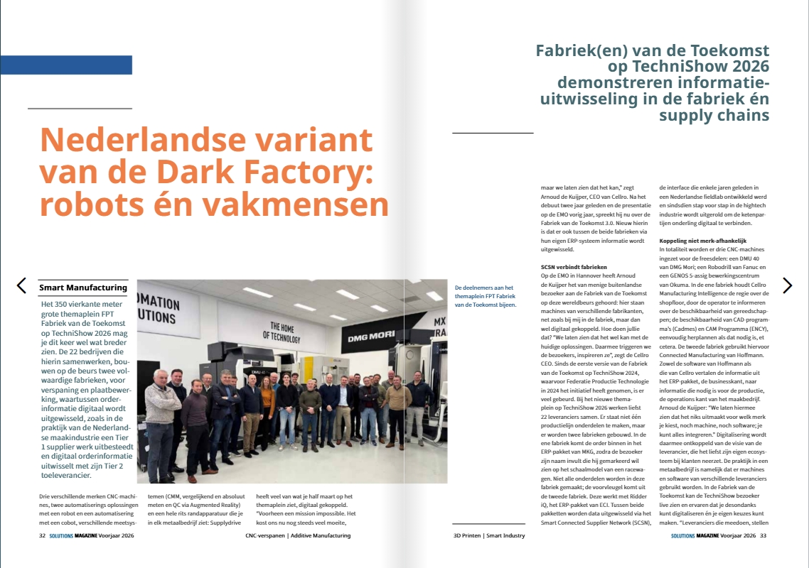 Lees in Solutions Magazine een uitgebreid artikel over welke technologieën geïntegreerd zijn en ook: wie neemt de verantwoordelijkheid als je dit in de echte praktijk van een maakbedrijf bouwt?